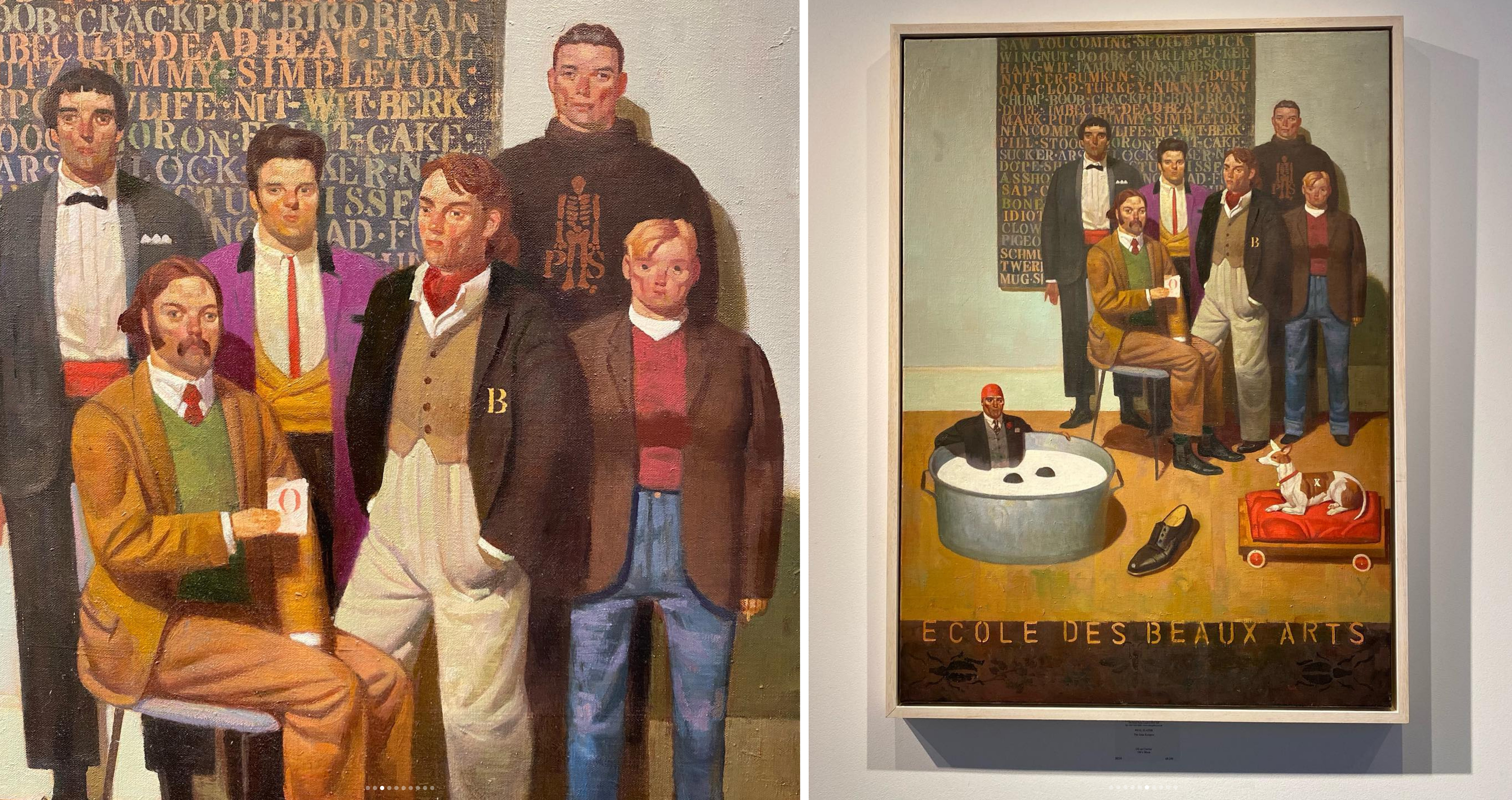 I last saw Paul at his exhibition at The Catto Gallery in Highgate a few years ago. He was unchanged from the first day I met him — humble, always deflecting any praise that came his way, a wry smile playing on his lips. The work was, as always, magnificent. The elegant surrealism and puzzling combos, featuring, as the catalogue said, “acrobatic cowboys, grim-faced couples in metal underwear, men wearing tiny trilbys and daleks in drawing rooms”, all underpinned with an awesome yet natural technique… everything that I loved since that day in the early 80s when I first saw his sketchbooks was on the walls in industrial-sized spades.
