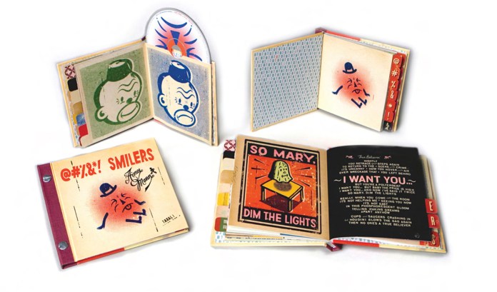 From the classic muted oils and beautiful pencil work of Owen, @#%&*! Smilers, the next album, leapt into the high-key universe of illustrator Gary Taxali. “Smilers has cartoon elements, it’s very graphic, it’s a little collage-y, and it’s funny ’cos I’d seen his stuff at the same gallery as the Owen show,” says Mann. Gary’s layers and quirks fit perfectly with Mann’s tales of eccentric Californian personalities living far from the bright lights of success or fame.